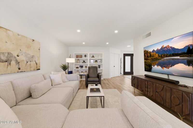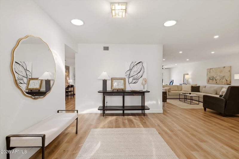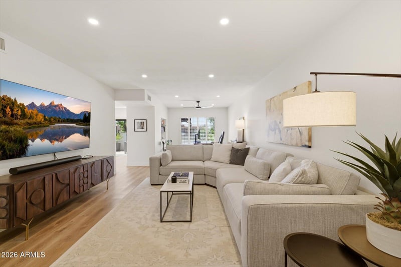 Listing details for 8167 Del Caverna Dr, Scottsdale, AZ 85258 : Beautifully updated home in sought-after McCormick Ranch featuring two separate living areas ideal for entertaining. One of the few units in the community with added square footage in the living room from the patio, creating a noticeably more spacious feel. Enjoy a cozy propane fireplace and numerous upgrades including a leveled front entry, new front doors and patio sliders, new interior and exterior paint, removed popcorn ceilings, added ceiling lights throughout (including the garage), new flooring, new appliances, new A/C unit and air handler, new water softener, new trim, and new solid-core interior doors. Additional improvements include updated landscaping, irrigation, and new ceiling fans. Truly move-in ready and located near scenic walking paths, dining, and shopping!