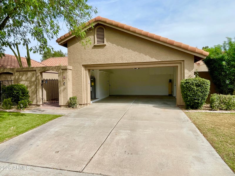 Listing details for 82 Calle De Arcos --, Tempe, AZ 85284 : Move-in ready! Warner Ranch 3 bedroom 2 bath townhouse with 2 car garage. Upon arrival the mature HOA maintained front landscaping with shade tree and large front private gated patio will catch your eye. As you enter the vaulted ceilings, new interior paint and open concept floor plan will invite you in. Kitchen boast a breakfast bar, granite countertops and vibrant LED lighting. Great Room features a wood burning fireplace, new 62'' ceiling fan, real wood shutters. Master suite has the convenience of two separate closets, exterior door and a travertine shower enclosure. Community features pool, spa, playground, parks and walking paths. Located 10 minutes from shopping, dining, airport, ASU, Chandler and South Mountain hiking trails. Welcome Home!