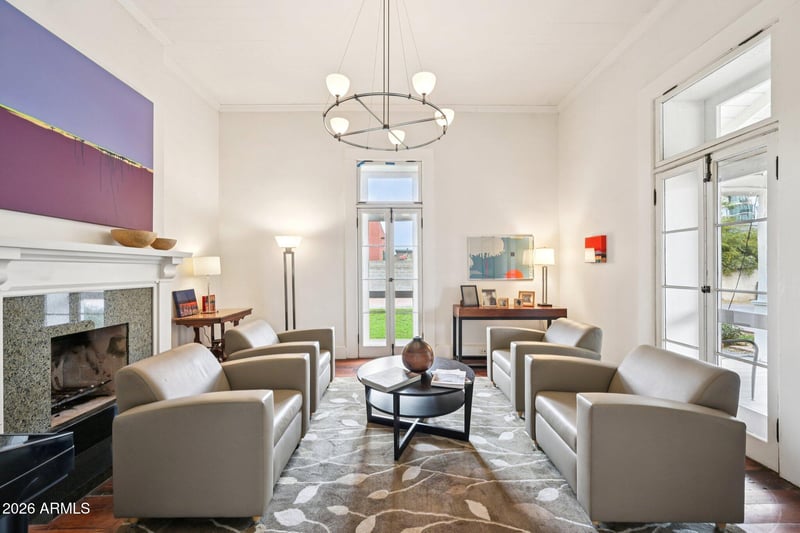 Listing details for 820 Farmer Ave, Tempe, AZ 85281 : The historic Farmer-Goodwin House is one of Tempe's true architectural treasures. Built in 1883 as ''The grandest house in the Valley'', this rare two-story adobe estate showcases striking Georgian Revival design, a symmetrical floor plan, grand central staircase, lime-plastered walls, and a distinctive hipped roof with ten flush dormers. Once home to ASU's first principal and later to prominent rancher James C. Goodwin, this residence is deeply woven into Arizona history. Lovingly restored and thoughtfully revitalized, this landmark property offers a rare opportunity to own a timeless piece of Tempe's heritage. This home is full of possibilities and flexible spaces, all on a half acre of land with a separate studio. All 4 bedrooms upstairs have plumbing for ensuite baths.