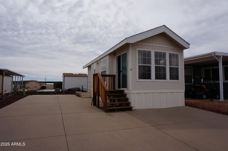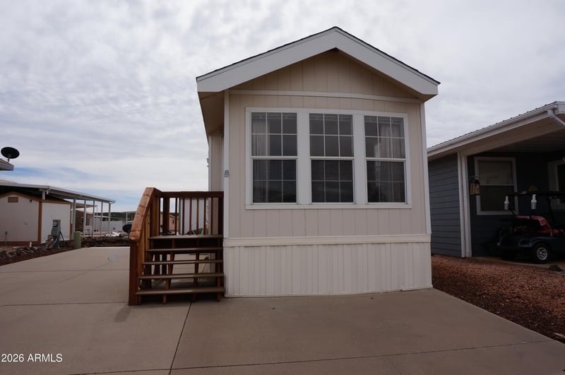 Listing details for 8207 Rainbow Loop #521, Show Low, AZ 85901 : Turnkey and totally refreshed, this charming 1 bed / 1 bath Cavco Park Model in the sought-after Juniper Ridge Resort community is ready for its next chapter. Just completed updates include a brand new 30-year shingle roof, new luxury vinyl plank flooring with baseboards throughout, and new front entry steps. The open living/dining combo features vaulted ceilings.The kitchen is well-equipped with an electric range, microwave, refrigerator, disposal, and pantry. Comfortable year-round with central air and electric forced heat. Double pane windows, vinyl siding, and a parking pad round out the exterior. Juniper Ridge is a gated 55+ resort community offering an incredible amenity package including a clubhouse, pool, spa, tennis courts, and fitness facility. Whether you're looking for a full-time residence, seasonal retreat, or investment property, this is an opportunity to own a piece of the White Mountains lifestyle at an exceptional price point.