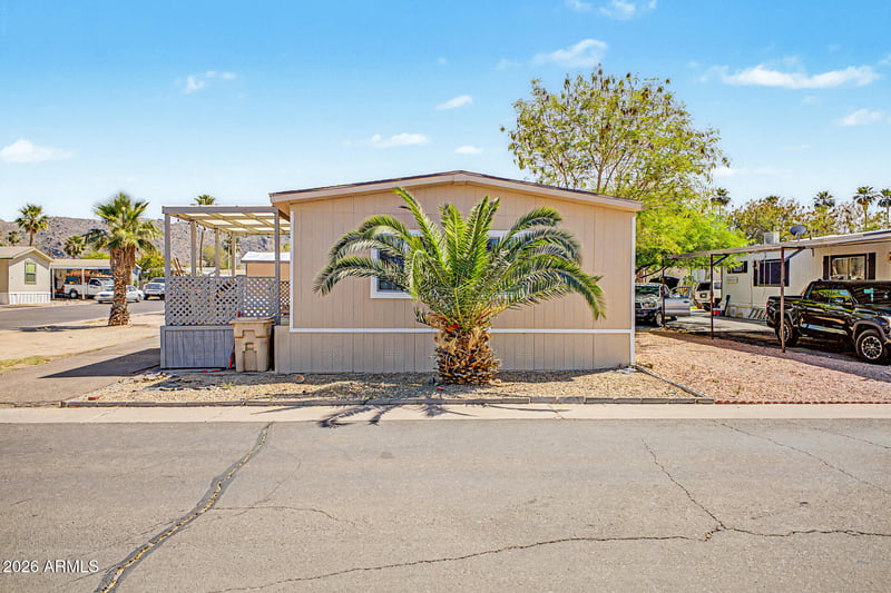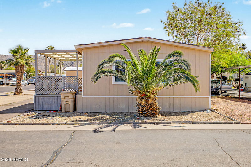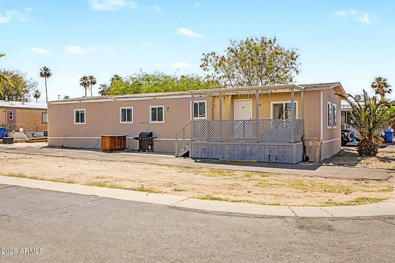 Listing details for 8218 7th St #68, Phoenix, AZ 85042 : Discover all the charm of this adorable 3-bedroom mobile home! The interior boasts wood-look flooring, vaulted ceilings with exposed beams to add character, plenty of natural light, and a soothing palette that makes you want to stay. The kitchen comes equipped with recessed lighting, white shaker cabinets, ample counter space, a walk-in pantry, and built-in appliances for a seamless cooking experience. Relax after a long day in the main retreat, complete with a full bathroom with double sinks and a separate shower & tub for added privacy and comfort. Spacious storage shed out back for extra organization. Don't miss out on the community's amenities, including the pool, sports court, and playground! Welcome home!
