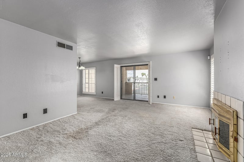 Listing details for 8231 21st Dr #E208, Phoenix, AZ 85021 : Welcome to this charming 2-bedroom, top-floor condo in the gated community of El Caro Villas! Enjoy an abundance of natural light throughout the spacious living area, complete with interior shutters throughout and a cozy fireplace in the living room. The kitchen features wood cabinetry and built-in appliances. Recent updates include some refreshed flooring and light bathroom improvements. Both bedrooms offer ceiling fans and mirrored wardrobe doors, with the primary suite featuring a private bath and generous closet space. Step outside to a covered patio which is ideal for relaxing or entertaining, while enjoying elevated views from this top-floor unit. This home also includes a 1-car garage and access to ample outdoor space for entertaining. Residents here can enjoy community amenities such as a pool, tennis courts, and beautifully maintained grounds with plenty of space to walk and unwind.