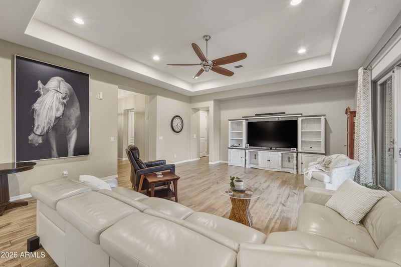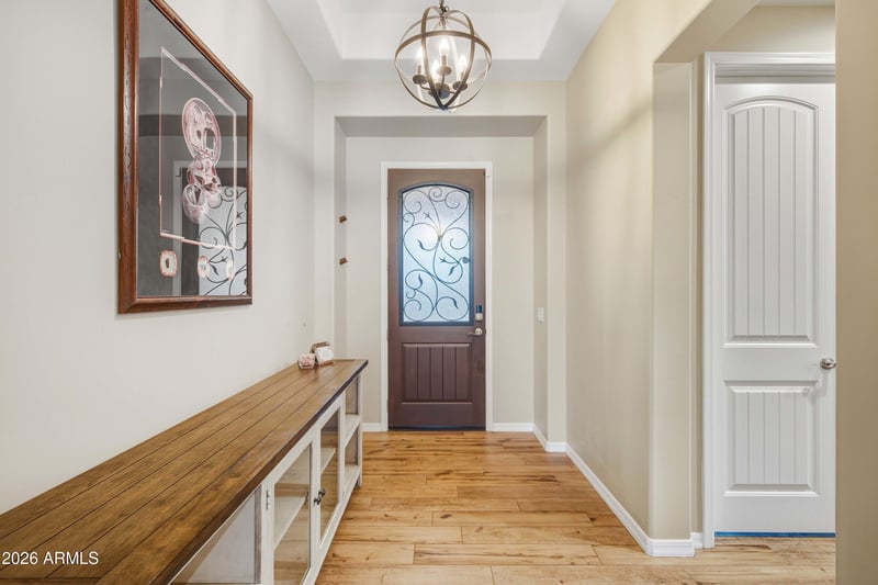 Step outside to your private backyard oasis, complete with a beautiful salt pool and irrigated turf—perfect for staying cool and enjoying Arizona's hot summer days. The property also offers an RV gate, a spacious 3-car garage, and brand-new insulated garage doors for added efficiency and comfort. Inside, upgraded Anderson sliding doors seamlessly connect indoor and outdoor living, enhancing both style and functionality.
