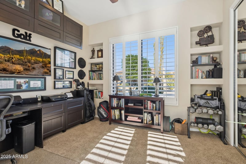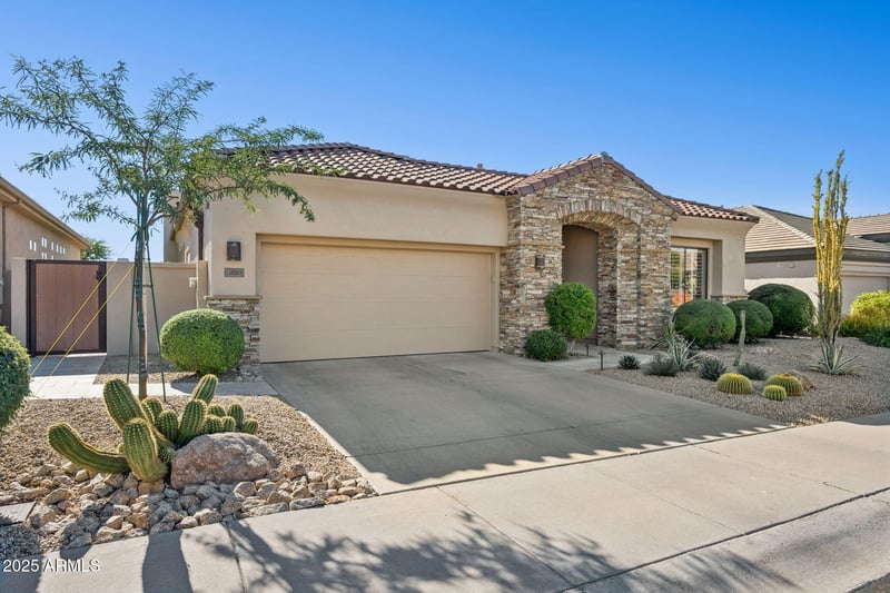 Listing details for 8265 Hoverland Rd, Scottsdale, AZ 85255 : Rare Opportunity in Guard-Gated Peregrine Villas at Grayhawk. Discover the largest Geoffrey Edmunds model in the highly sought-after, guard-gated Peregrine Villas enclave within Grayhawk's prestigious Talon Retreat. This inviting home welcomes you with a private courtyard entrance and a separate casita—perfect for guests or a home office. Step inside to a light-filled, open floor plan featuring dual master suites plus a versatile den in the main house. Thoughtful upgrades abound sleek granite countertops in the kitchen, built-in organizers in the primary closet, custom window treatments, and ceiling fans throughout. Unwind in the serene, south-facing backyard oasis featuring custom putting green to work on your game. Ideal as a low-maintenance lock-and-leave retreat, this home combines convenience, and the unbeatable Grayhawk lifestyle complete with community pool, walking paths, and nearby golf. Don't miss this gem.