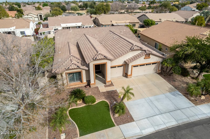 Listing details for 828 Teakwood Dr, Chandler, AZ 85249 : This original-owner, fabulous single-level with Soaring Vaulted Ceilings features a desirable SPLIT floorplan with four bedrooms, 2.5 baths, and a three-car garage, built with high-end 2x6 construction. Located in a highly sought-after Chandler neighborhood with A+ schools, it offers quality and comfort. The primary suite includes a bay window, single French door to rear yard, separate tub, shower, and large walk-in closet. The kitchen showcases a large granite island opening to the spacious family room. Additional highlights include 8-foot doors throughout, NEW HVAC 2025/2023 and an expanded laundry room with sink. Enjoy formal living and dining areas, artificial grass front and back, a covered patio, and a wide side yard with RV gate and storage shed.