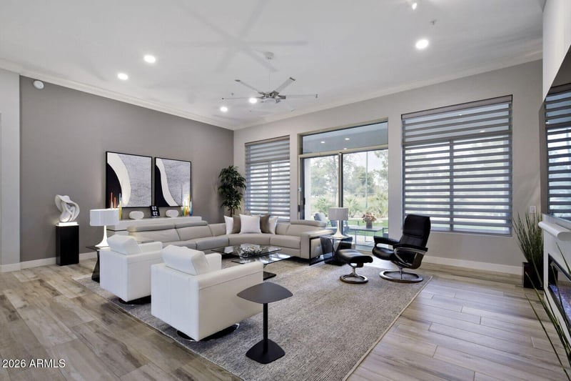 Listing details for 8306 Sunnyside Dr, Scottsdale, AZ 85260 : Perfectly located in the heart of Scottsdale, this residence offers the epitome of luxury living. spacious and elegantly appointed with approx. 3097 sq.ft., 4 bedrooms and 3 bathrooms. Situated on a large golf course lot, walls of windows, 2 custom fireplaces, automatic window treatments throughout. Attractively planned, this home is designed for contentment and a positive lifestyle in mind. This spectacular home highlights a meticulously appointed living room with custom fireplace. The exquisitely planned kitchen w/abundant cabinetry, large island wrapped in granite is open to dining, spacious family room, is a wonderful place to wind down and enjoy the blaze fireside. Primary bedroom w/perfectly appointed lux spa vibe. Low maintenance backyard w/large covered patio, beautiful pool, and artificial grass. Lush upgraded front yard and back yard landscaping. Community amenities include Guard gated services, tennis/pickleball courts and weekly front yard landscape maintenance.