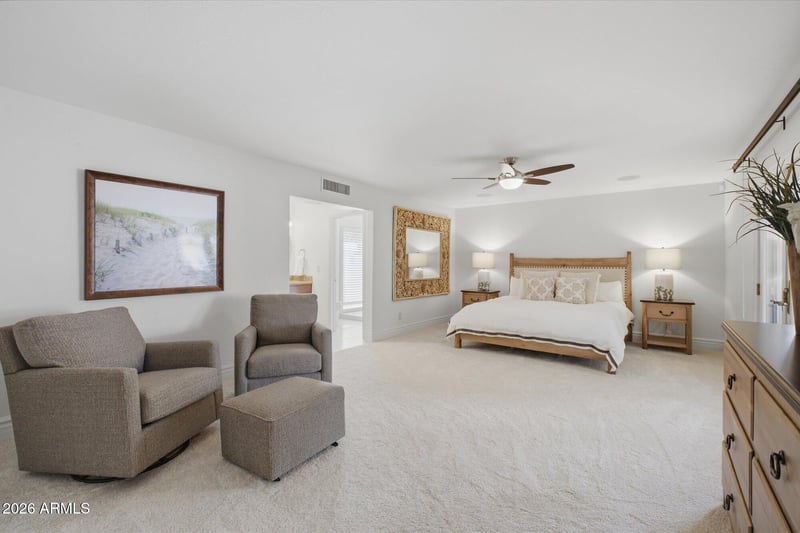 Listing details for 8314 San Rosendo Dr, Scottsdale, AZ 85258 : McCormick Ranch home on an 11,155 sq ft corner lot just down the street from Cochise Elementary--walk to school and skip the car line. No interior steps, vaulted ceilings, and a light, bright open floor plan. Updated kitchen with quartz countertops and stainless-steel appliances. Split floor plan for added privacy. Owned solar for low electric bills plus new AC in 2023. Super private backyard with sparkling pool, rare diving pool, covered patio, and direct bathroom access from pool. North/South exposure, RV gate, and driveway tucked in a cul-de-sac for added privacy and reduced traffic. Quiet interior street near Mountain View Park, greenbelt, and walking/biking paths. Come Say Yes To This Address.