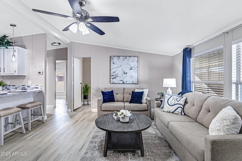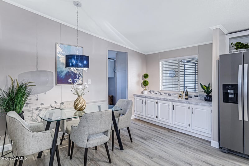 Listing details for 834 Meridian Rd #81, Apache Junction, AZ 85120 : Live the Good life in this Cozy yet Luxurious Desert Retreat, nestled in a quaint 55+ Gated Community. You'll be welcomed by an expansive open concept Living Area with vaulted ceilings and abundant Natural Light. The beautifully updated Kitchen features NEW Stainless Appliances and ample
