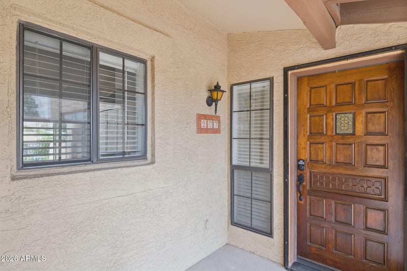 Listing details for 8344 21st Dr #I207, Phoenix, AZ 85021 : Welcome to this charming, truly move-in ready, 2 bedroom, 2-bath top-floor condo in the gated community of El Caro Villas! Includes large 1-car garage. This desirable unit offers a private entry with extra space to make it your own. Step inside through a beautifully carved wood door and enjoy an abundance of natural light filling the spacious living area, complete with a cozy fireplace. Take in scenic mountain views from the kitchen, dining area, and great room, creating a bright & inviting atmosphere. Recently updated with fresh interior paint. Luxury plank vinyl flooring in great room & bedroom/office. Windows replaced in dining room. Kitchen features updated cabinetry with new hardware, new quartz countertops, & brand new built-in appliances - range, microwave, dishwasher & refrigerator. Additional upgrades include new carpet in primary suite w/large walk-in closet. Primary bath updated with new tub & tile surround. Modern light fixtures throughout, ceiling fans. The second bedroom includes double doors opening to the great room, enhancing the open feel and offering a flexible space to use as an office, guest room, or den. Enjoy the convenience of inside laundry w/extra storage space. Step outside to your private covered patio & unwind while taking in the views from this top-floor retreat. This community offers two pools, heated spa, tennis courts, fitness center, clubhouse, and walking paths. Convenient access to light rail and freeways. Welcome home!