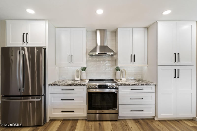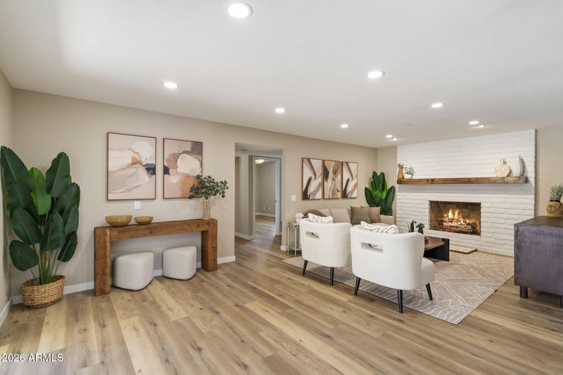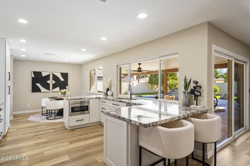 Listing details for 8347 Vía De Dorado --, Scottsdale, AZ 85258 : Welcome to 8347 E Via Dorado, Scottsdale, 85258-Discover luxury living in the heart of Scottsdale's most coveted community, McCormick Ranch. This completely transformed 3-bedroom, 2-bath residence offers 2,114 square feet of thoughtfully redesigned living space on an impressive oversized 9,350-square-foot lot. The home has undergone a top-to-bottom renovation with exceptional attention to detail. Updates include custom cabinetry throughout, high-end laminate flooring, fresh interior paint, new doors and windows, upgraded lighting fixtures, and more. The stunning, newly remodeled kitchen features brand-new appliances, including a range, microwave drawer, dishwasher, and refrigerator. Designed for both function and gathering, the kitchen-breakfast combination offers a coffee bar, appliance counter, and eat-in breakfast bar, ideal for everyday living and entertaining. The updated family room highlights a large gas fireplace with custom wood mantel, abundant recessed lighting, and a generous dry bar with wine coolerperfect for hosting. The living and dining room combination features new lighting while preserving the home's original character with its charming arched front window. The primary suite is complemented by an updated bathroom with dual vanities and a custom closet organizer. Step outside to your private backyard retreat, where the oversized lot showcases a pebble-tec pool with waterfall feature, mature landscaping, and low-maintenance synthetic turf, creating an ideal setting for relaxation and outdoor enjoyment