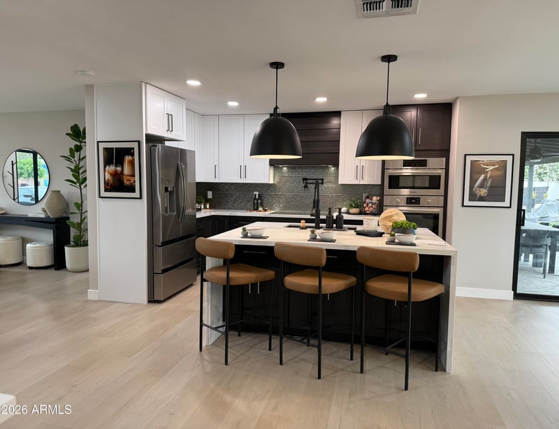 Listing details for 8350 Pinchot Ave, Scottsdale, AZ 85251 : Welcome to a cul-de-sac residence where meticulous design meets unparalleled comfort, soon to be showcased on an upcoming YouTube episode. This exquisitely remodeled home invites you to experience luxury living at its finest. New Construction feel, in the heart of Old Town! As you step through the front door, you're greeted by an open feel all the way to the entertaining back yard experience, setting the tone for the elegance that unfolds throughout the home. Culinary enthusiasts will be captivated by the state-of-the-art kitchen, designed for both functionality and style. High-end appliances, cabinetry, and expansive countertops create an inspiring space for any chef. The home boasts two suites and a casita with a private entrance off the pool. The main suite offers a private sanctuary of comfort with indoor outdoor shower and spa. Thoughtfully designed layouts and luxurious finishes ensure a restful retreat. From the front door, your eyes are drawn to the vast backyard, an entertainer's paradise. The soothing sounds of a custom water feature complement the full outdoor kitchen and expansive area, perfect for gatherings, relaxation, and play. Every corner of this home has been crafted with attention to detail, including abundant storage solutions that blend seamlessly with the home's design.