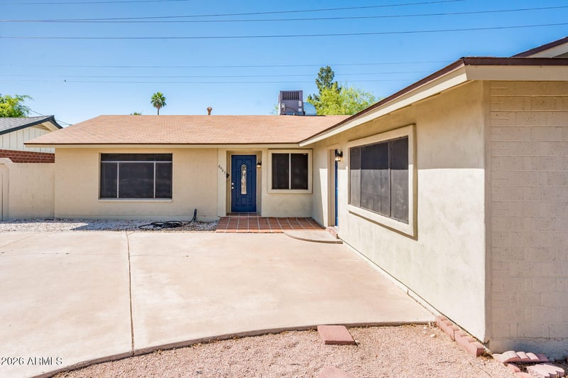 Listing details for 8407 Crestwood Way, Scottsdale, AZ 85250 : Welcome to this well-maintained property, featuring five bedrooms and three baths, including a main house with an in-law suite, perfect for a family member, parent, or a teenage student. The main property features four spacious bedrooms and two bathrooms. The in-law suite includes one bedroom, one bathroom, a kitchen, and a living area. The main house features an open great room floor plan with a large kitchen equipped with ample cabinets, a kitchen island, granite countertops, and a cozy eat-in area. The fourth bedroom can serve as a den or an office (there is a closet). The second and third bedrooms offer built-in bookcase shelving for extra storage. The primary bedroom is spacious and includes a generous walk-in closet. You can take advantage of the indoor laundry room, which has an additional storage/hobby room. Appliances such as the refrigerator, washer, and dryer are included with the home. This property boasts several additional features, including sunscreens, window coverings, beautiful flooring, light-colored paint, closet built-ins, ceiling fans, and more. Enjoy the benefits of north/south exposure on a private lot, featuring a sitting patio. The front and backyard are enhanced by easy-to-maintain desert landscaping. Situated in a desirable Scottsdale location, this home is near Old Town Scottsdale, spring training baseball, Scottsdale Fashion Mall, ASU, freeways, parks, golf courses, bike paths, restaurants, Talking Stick Casino, and much more!