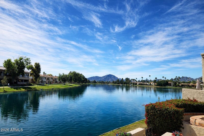 Listing details for 8407 Del Camino Dr, Scottsdale, AZ 85258 : Discover serene lakefront living in the guard-gated community of the sought after Las Palomas. This distinctive residence sits on one of the neighborhood's most coveted lots, offering rare, unobstructed views of Lake Marguerite and Camelback Mountain, a perspective only a select few homes enjoy. The home features a fully remodeled kitchen and primary bathroom, blending modern comfort with timeless style, while the remaining spaces provide an excellent opportunity for personalization. A brand-new roof installed in 2024 adds peace of mind and long-term value, and owned solar enhances energy efficiency and long-term savings. Natural light fills the interior, drawing the eye toward the tranquil waterfront setting that defines the home's character and creates a calm, resort-style atmosphere ideal for both everyday living and entertaining. Residents of Las Palomas enjoy guard-gated security and resort-style amenities including a community pool and spa, tennis and pickleball courts, and scenic walking paths throughout McCormick Ranch. Just minutes from premier dining, shopping, golf, and outdoor recreation, this is a rare opportunity to own a lakefront property with iconic views and exceptional potential in one of Scottsdale's most desirable communities.