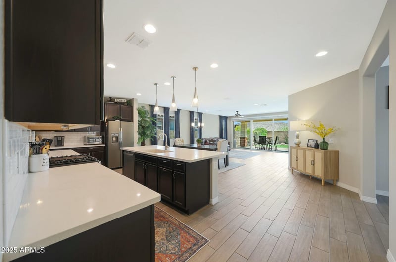 Listing details for 8419 164th Dr, Goodyear, AZ 85338 : Welcome to Estrella Mountain Ranch, one of Goodyear's most desirable master-planned communities! This gorgeous upgraded single-level spec home offers views of the Estrella Mountain Regional Park from the three-panel sliding glass door spanning the length of the living room. Enjoy elegant 8-foot doors, 4-inch baseboards, and tile flooring throughout the main living areas. The gourmet kitchen features a large island, upgraded cabinetry, GE Profile appliances, gas range, HUGE walk-in pantry and more! Just a short walk to Star Tower for star gazing, or Cafe Bebida for an A.M. treat. This home is located at the entrance of Estrella, creating easy access to Phoenix, and all that the Valley has to offer! Home is also offered for lease, please inquire.