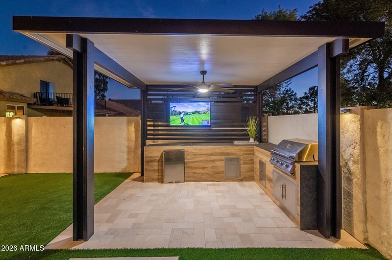 Listing details for 8494 Charleston Ave, Peoria, AZ 85382 : NO HOA! This is your chance to live in absolute luxury in the heart of Peoria! Upgraded every inch of this beautiful home inside and out makes every day feel like you're on vacation. From gourmet kitchen, thick granite countertops, farm style sink, opening up to the living room w/ a beautiful fireplace, master suite with barn doors entering into your luxury bathroom with walk in shower, plus from two extra beds and bath. Save THOUSANDS on Fridge, washer, & dryer ALL to convey! And we haven't even made it out to the best part yet. An incredible backyard that would take $60,000+ to duplicate. A ramada with built in fridge, grill, and TV, then relax with a late night cocktail next to your fire pit with built in lounge and it's absolute paradise. This is an incredible home & a must see!