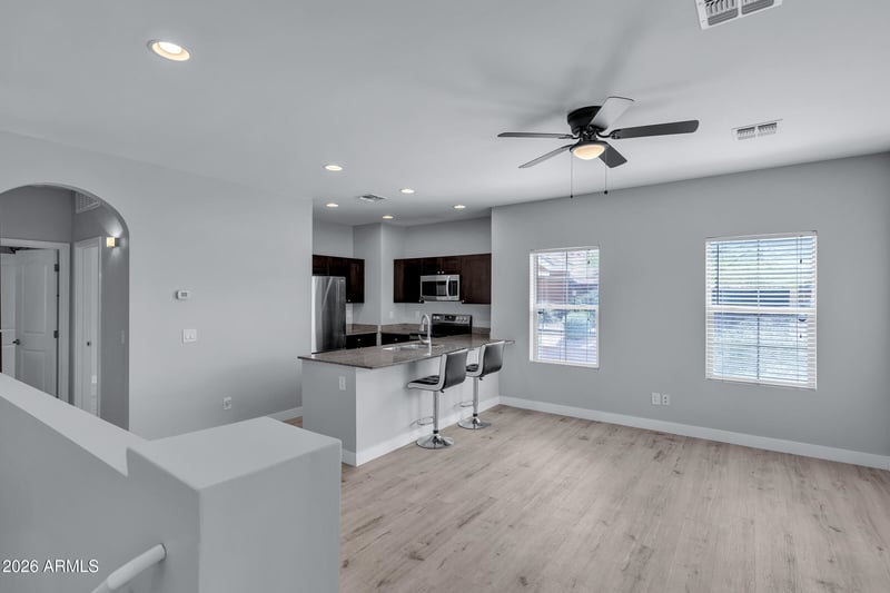 Listing details for 854 San Marcos Dr #7C, Apache Junction, AZ 85120 : Turnkey Basement Townhome -- Move right into this spacious 3-bed, 2-bath basement townhome in sought-after Apache Junction. The main level features a bright living room, primary bedroom, and a modern kitchen upgraded with granite countertops and a breakfast bar. Downstairs offers exceptional versatility with two additional bedrooms, a full bath, and a large family room. Enjoy fantastic mountain views, two assigned parking spaces, and access to a community pool. Situated for convenience, you're just moments from the US-60 freeway, retail, and local amenities.