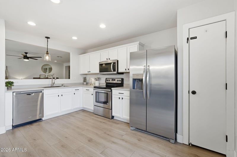 Listing details for 8550 Lakeview Ave, Mesa, AZ 85209 : THIS IS THE ONE! Bright, clean, and truly move-in ready—this is the home you've been waiting for. This stunning 3-bedroom, 2-bathroom home PLUS office offers style, comfort, and thoughtful upgrades throughout. Abundant natural light and luxury vinyl plank flooring welcome you inside. The open kitchen perfectly overlooks the living room and features stainless steel appliances, crisp white cabinetry, and updated lighting, making it ideal for both everyday living and entertaining. The owner's suite has a walk-in closet, custom tile shower, and a gorgeous vanity, creating a relaxing retreat. You'll love the charming details throughout, including elegant wainscoting, abundant built-in storage, and ornate tile in the laundry room. Step outside to your own low-maintenance backyard oasis... complete with a paver sitting area, built-in planter, bistro lighting, and a grassy spaceperfect for unwinding in the evenings. Conveniently located near freeways, schools, and dining. Don't miss this opportunityschedule your showing today!