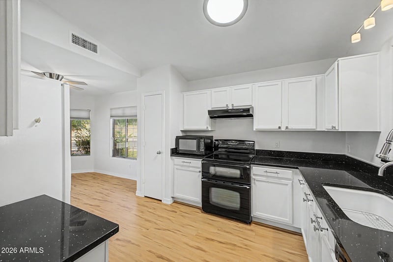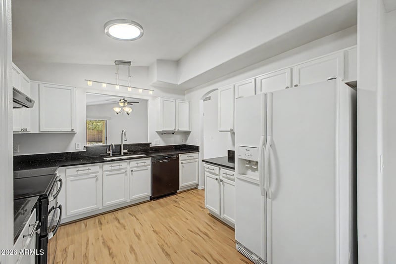 Listing details for 8551 Voltaire Ave, Peoria, AZ 85381 : Welcome home to this refreshed 3-bedroom, 2-bath residence offering comfort, space, and endless potential. Step into a spacious eat-in kitchen featuring granite countertops, a charming breakfast nook, all appliances included--perfect for both everyday living and entertaining. The open layout flows seamlessly to a covered patio through sliding doors, creating an ideal indoor-outdoor lifestyle. Each bedroom is generously sized, while the primary suite is a true retreat with private patio access, a large soaking tub, and a walk-in closet. Enjoy a sizable backyard complete with a privacy wall and low-maintenance synthetic grass--an excellent canvas for your dream pool or outdoor oasis. Fresh interior paint and brand-new carpeting in the bedrooms make this home truly move-in ready