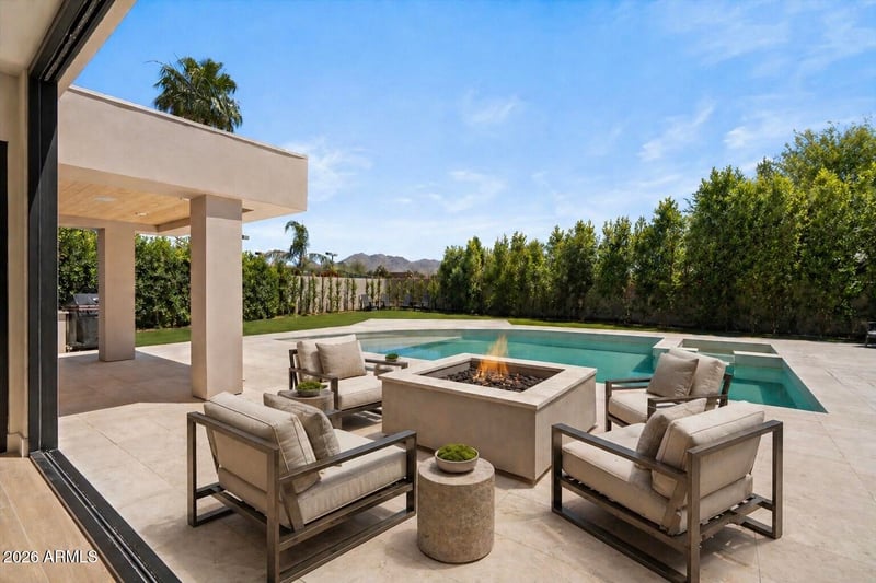 Listing details for 8565 Vista Del Lago --, Scottsdale, AZ 85255 : Crafted as a personal residence with no detail overlooked, this newly completed Pinnacle patio home offers a rare blend of modern design and effortless luxury just moments from Pinnacle Peak Country Club. Thoughtfully designed with clean architectural lines, expansive glass, and seamless indoor-outdoor living, the home opens to a resort-style backyard featuring a sleek pool, spa, and fire feature framed by lush privacy landscaping and mountain views. Inside, a chef's kitchen anchors the space with custom cabinetry, premium appliances, and oversized stone islands, flowing into a dramatic great room with soaring ceilings, exposed beams, and statement lighting. Every finish was selected with intention from wide-plank flooring to designer fixtures creating a refined yet comfortable living experience. Originally built to be lived in, not sold, this home presents a unique opportunity to own a truly dialed-in property where quality, design, and location converge.