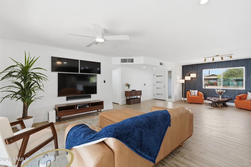 Listing details for 8607 Jackrabbit Rd, Scottsdale, AZ 85250 : STUNNING HOME! If you have been waiting for the perfect single level home in 85250 this is it! This beautiful home features a very open floor-plan with an updated kitchen with dark blue shaker style cabinets, Quartz counter-tops, stainless steel appliances, custom millwork throughout the house, oversized 16' slider door to the back yard, wide plank tile flooring, updated bathrooms featuring Quartz countertops, updated lighting, decorative tile wrapped shower surrounds, elegant plumbing finishes, updated windows and interior doors and much more. The location is ideal with the best restaurants, shopping, hiking and golf all very close by. Homes this nice rarely stay on the market very long!