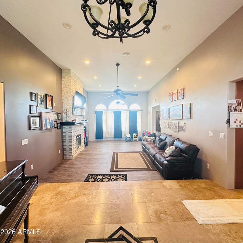 Listing details for 8621 Via Montoya Dr, Peoria, AZ 85383 : Welcome to this exquisite property that offers the perfect blend of luxury and functionality. This stunning main house was rebuilt in 2016 after a fire. It boasts 3,108 square feet with 4 bedrooms and 3 bathrooms. The guest house is 920 square feet. Throughout most of the main home you will find beautiful Turkish travertine flooring. The heart of this home is the entertainer's kitchen, featuring floor to ceiling custom cabinetry, a large granite island with ample storage, a custom glass cooktop and double ovens. Living room has a two-way fireplace that is shared with the master bedroom. The fireplace is adorned with natural stone and a custom designed mantle, adding warmth and charm to the space. Master suite has double sinks, his/hers closest and an oversized walk in shower.