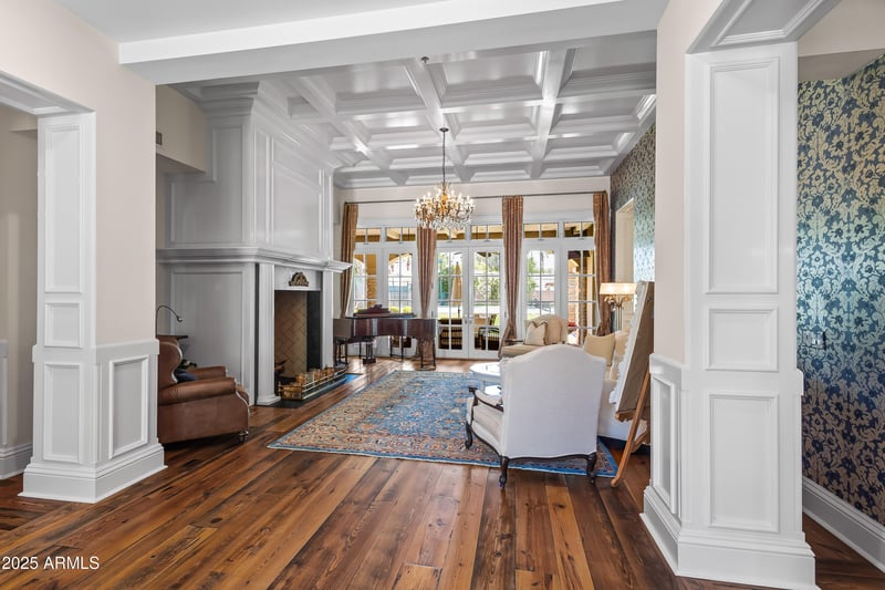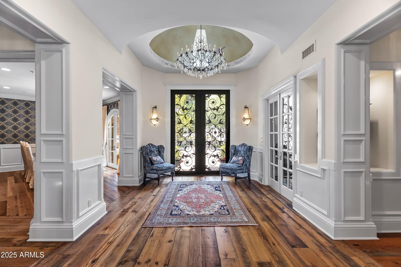 Listing details for 8660 Morning Glory Rd, Paradise Valley, AZ 85253 : Experience refined desert luxury at this spectacular Paradise Valley estate nestled on over 1.3 acres of beautifully landscaped grounds with a private well. This timeless residence is perfectly situated in one of Arizona's most coveted neighborhoods. Step inside to discover soaring ceilings adorned with intricate paneling and designer chandeliers. The open-concept family room showcases walls of French doors, filling the home with natural light and providing seamless access to the outdoor living spaces. Entertain in style in the formal dining room or the chef's kitchen, featuring high-end appliances, a large center island, eat-up bar, and spacious pantry—ideal for gatherings both intimate and grand. The primary suite offers a private sitting room with fireplace, dual walk-in closets, and a spa-inspired bathroom with enclosed toilets, dual vanities, an oversized shower, and a separate soaking tub. Enjoy endless entertainment with a dedicated home theater, wine room, and private tennis court. Outdoors, a custom pool and spa are surrounded by lush landscaping and multiple seating areas, creating a serene retreat perfect for relaxation or hosting. Located just minutes from world-class dining, shopping, and golf, this exceptional property is an unmatched offering in the heart of Paradise Valley.