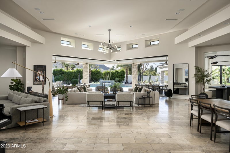 Listing details for 8700 55th Pl, Paradise Valley, AZ 85253 : Set in the heart of prestigious Paradise Valley, this property is a private desert retreat surrounded by luxury estates and breathtaking mountain scenery. This single level residence offers 5 en-suite bedrooms, 5.5 bathrooms, a game room, study and approximately 6,744 square feet of thoughtfully designed living space. The home welcomes you with generous living and entertaining areas filled with natural light, high ceilings and seamless indoor-outdoor flow. The kitchen features beautiful custom cabinetry, high end appliances, quartz countertops, ample storage and an ideal layout for both everyday living and hosting. The primary suite serves as a private retreat, complete with fireplace, spa-style bath, walk-in closet and patio access. Outdoors, the property is designed for true Arizona living, featuring pool/spa with water and fire features and a swim up bar, expansive covered patio space, multiple seating areas, in ground trampoline, large grassy turf spaces, outdoor kitchen, mature desert landscaping and privacy. Enjoy views of Mummy Mountain and surrounding peaks, vibrant sunsets, and tranquil desert skies from your own backyard oasis. Ideally located just minutes from world-class resorts, fine dining, championship golf, hiking trails, and the best of Scottsdale and Phoenix, this home combines peaceful seclusion with unmatched convenience. Whether enjoyed as a primary residence or seasonal escape, this Paradise Valley property offers timeless appeal in one of Arizona's most coveted locations.