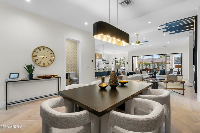 Listing details for 8701 Vista Dr, Scottsdale, AZ 85250 : Experience modern luxury in the heart of Central Scottsdale with this total transformation. Reimagined from the ground up, this 5-bedroom single-level masterpiece features a massive addition, including an entirely new primary wing and a true dual-master layout. No detail was spared: Anderson windows, pine tongue and groove flooring, premium quartz counters, and a sleek hidden walk-in pantry. Outside, metal roof accents over the entrance, garage, and window awnings provide striking curb appeal. Every system is brand new, from the roof and HVAC to the landscaping. The open floor plan flows to a private oasis with a newly constructed pool. With 3.5 designer baths, this home offers a ''new build'' feel in a prime location. Meticulously crafted for the most discerning buyer.