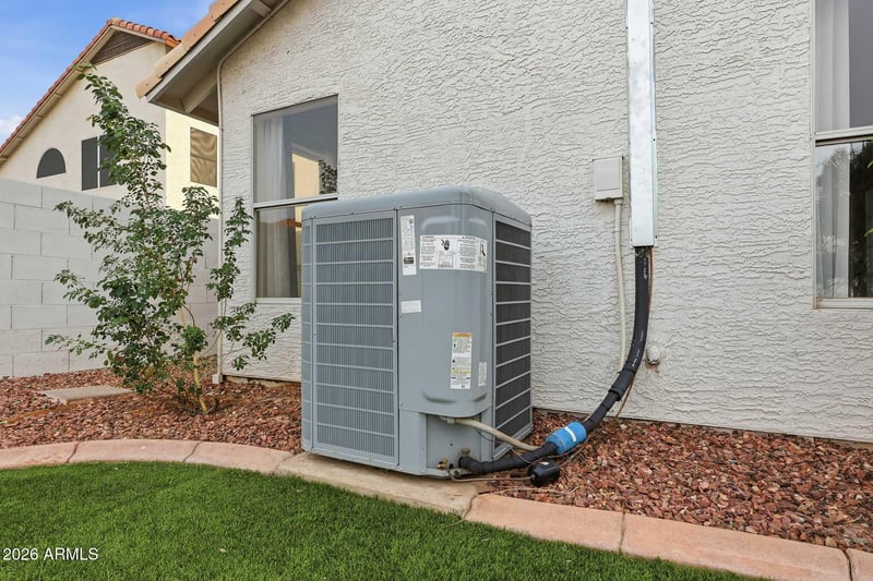 Listing details for 8730 Betty Elyse Ln, Peoria, AZ 85382 : Nestled in a secluded enclave walking distance to A+ Desert Harbor Elementary, this Continental Brigata split-plan model features lofty vaulted ceilings & an open, light-filled layout w/ rare 3 car garage! The owners have ensured zero deferred maintenance through massive capital and mechanical improvements: MECHANICAL & STRUCTURAL IMPROVEMENT: -SOLAR: Owned 32-panel 8KW system w/ inverter, it is a free gift of elect -HVAC: 2023 High-Efficiency 21-SEER Variable Speed Carrier System (Bi-annual service history). -WINDOWS/DOORS: Double-insulated vinyl windows & retrofitted exterior patio doors. -ROOF & PLUMBING: New roof (2016); New Water Heater & timers (2023) Water Softener(2020) -CUSTOM INTERIOR RENOVATIONS: Brand new carpeting & professional interior paint (2026) MORE... KITCHEN/BATHS: Full 2016 overhaul w/ custom cabinetry, tile backsplashes, and custom tile showers. EXTERIOR OASIS: :Private North-South lot w/ large covered patio and mature landscape, :Cool pebble tec play pool w/ energy-efficient variable speed pump & convenient removable safety fence. Located 5 mins from Bell Rd amenities, this home offers the efficiency of new construction with the privacy of an established neighborhood.