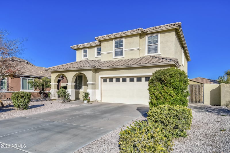 Listing details for 874 Furness Dr, Gilbert, AZ 85297 : Impeccably maintained two-story home on a quiet street, offering 5 bedrooms, 3 full bathrooms, upstairs laundry room and 2,903 square feet of well-designed living space in the heart of Layton Lakes. Generously sized rooms throughout provide flexibility for a variety of living needs, including entertaining, guests, or home offices. Enjoy the large backyard with built in garden and extended covered patio, also a concrete path surrounding the house. There is plenty of room for a pool. Layton Lakes offers walking/bike trails, parks, playgrounds, tennis courts. Conveniently located near shopping, dining and schools serving the area including Weinberg Gifted Academy (buyer to verify enrollment and availabilty.)