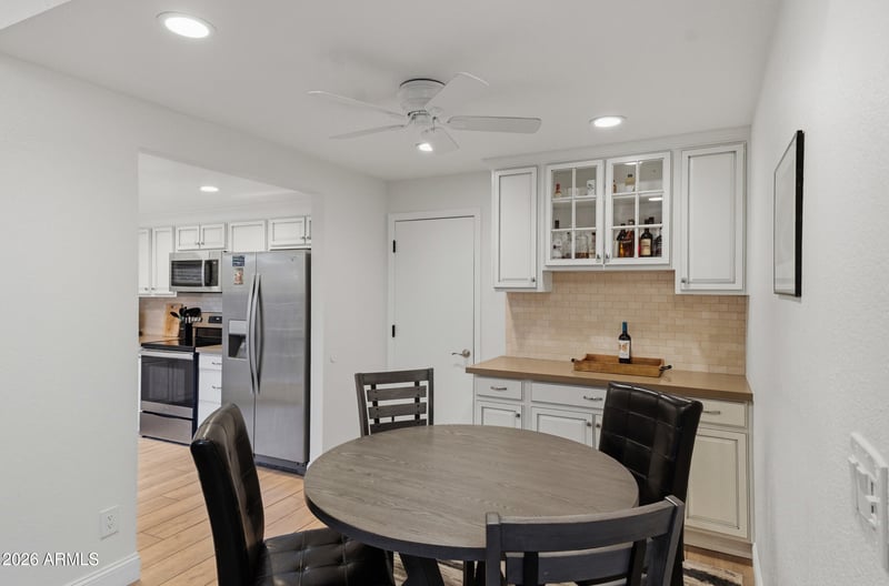 Listing details for 8756 Via De La Luna --, Scottsdale, AZ 85258 : Immaculate, move-in ready single-level townhome in the heart of McCormick Ranch—one of Scottsdale's most desirable areas. Recently repainted inside and out, this beautifully maintained 3-bedroom, 2-bath residence offers updated kitchen and baths, tile flooring throughout, and an airy great room highlighted by vaulted wood-plank ceilings, a skylight, and French doors that open to a private patio. A charming private courtyard with trellis landscaping welcomes you into the home, creating a seamless indoor-outdoor living experience. The bright kitchen features white cabinetry, quartz countertops, stainless steel appliances, tile backsplash, and filtered water, making it both stylish and functional. The spacious primary suite provides direct patio access, a walk-in closet, and an ensuite bath with a step-in shower. Two additional bedroomsideal for guests, a home office, or flex spaceare complemented by a full guest bath. Extensive recent upgrades include a new HVAC system (2022), water heater (2021), baseboards (2021), washer and dryer (2021), and water softener. The attached two-car garage offers hanging storage and keypad entry. HOA conveniently covers water, sewer, and trash. Enjoy true resort-style living with access to a community pool and clubhouse, 25 miles of scenic biking and walking paths, 130 acres of lakes for fishing and boatingincluding Marguerite and Camelback Lakesand two championship 18-hole golf courses. Exceptional location just minutes from premier dining, shopping, entertainment, and easy Loop 101 accessperfect for full-time living or a lock-and-leave Scottsdale retreat.