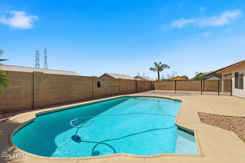 Listing details for 8817 El Caminito Dr, Peoria, AZ 85345 : RV PARKING/GATE w/ POOL in this nicely updated truly move-in ready home w/ quick Fwy access! Vaulted ceilings and lots of light along with the New Luxury Vinyl Tile and baseboards throughout the home creates a seamless flow from the entry to the Formal dining room or office (or easily create a 4th bedroom) to the updated eat-in kitchen w/ quartz countertops and walk-in pantry is open to the ample Great room. Spacious primary ensuite features dual vanities, soaking tub, separate shower, private toilet room and walk-in closet. Newly Epoxy'd garage floor shines! Large back yard provides you space to create your own oasis around your large fenced in pool.