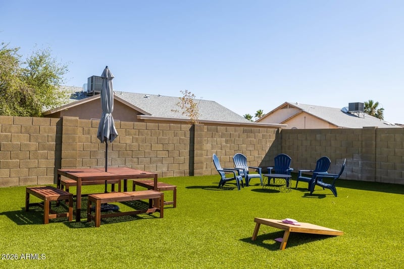 Listing details for 8821 Keim Dr, Glendale, AZ 85305 : STR opportunity! Beautiful 4-bedroom, 2-bath home in the desirable La Buena Vida community of Glendale. Step inside to a bright, open layout featuring soaring vaulted ceilings and abundant natural light throughout. The spacious island kitchen is perfect for everyday living and entertaining, offering gas cooking, ample cabinet and counter space. The private primary suite provides a relaxing retreat with a walk-in closet and a well-appointed ¾ ensuite featuring dual vanities. Enjoy the benefits of a 3-car garage and an incredible backyard designed for entertaining. Host gatherings under the covered patio or cool off in the sparkling pool--your own private oasis. Furnishings can be included on a separate bill of sale, allowing a buyer to step into cash flow operations from day one if desired or transition easily to family living. This is currently an investment property that operates as a short term rental, currently listed on Airbnb, VRBO and multiple other platforms. Property management in place and will be turn key. A rare opportunity to own a property that delivers immediate income potential and long term lifestyle and appreciation in one of Glendale's most desirable locations, blocks away from State Farm Stadium.