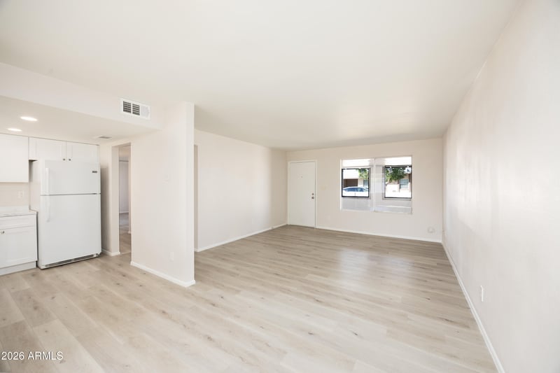 Listing details for 8827 Sells Dr, Phoenix, AZ 85037 : Move-in ready 4-bedroom home with major upgrades! This 1,494 sq ft single-level property features fresh interior updates, modern flooring, and a bright open layout. The kitchen offers white cabinetry, updated countertops, and matching appliances with a pass-through to the living area. Bathroom includes a modern vanity and clean finishes. Brand new roof and brand new AC unit installed this week, giving buyers peace of mind. Spacious backyard with a large covered patio and built-in outdoor fireplace, perfect for entertaining. Block-fenced yard provides privacy and room to create your ideal outdoor space. Convenient West Phoenix location near Loop 101, I-10, Westgate Entertainment District, State Farm Stadium, shopping, dining, and schools. Great opportunity for homeowners or investors.