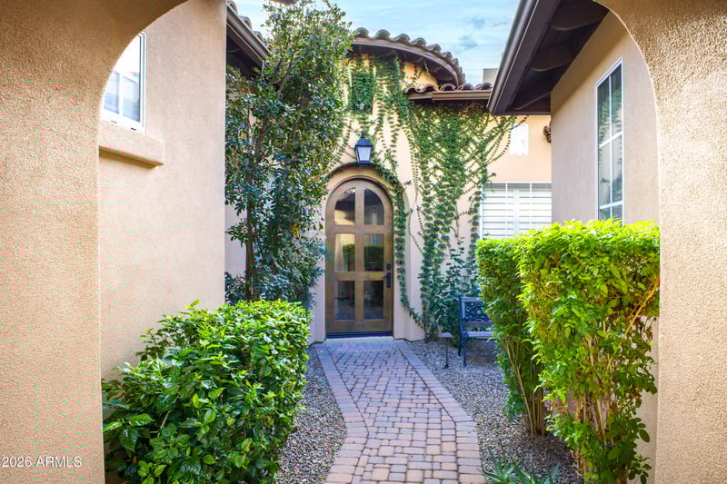 Listing details for 8883 Mountain Spring Rd, Scottsdale, AZ 85255 : Discover this charming 3-bedroom villa with a den & 3 bathrooms, ideally situated in the highly desirable, gated community of DC Ranch. A paver-stone driveway leads to a welcoming front courtyard with separate guest casita. Step inside through the custom wood-and-glass entry door. The spacious kitchen offers stainless steel appliances, gas cook top, pantry, large island and a cozy breakfast nook overlooking the courtyard. Interior highlights include newer carpet, recently re-stained cabinetry, plantation shutters, travertine tile floors, gas fireplace in family room, ceiling fans and recessed lighting. Primary suite offers direct access to the back patio and ensuite bath features tile countertops, a separate tiled shower and soaking tub, dual sinks, and an expansive walk-in closet with custom built-in shelving and drawers. Relax and enjoy the mountain views on the South facing private back patio. Situated within walking distance to Market Street's retail shops and restaurants, the location within the community is unbeatable. The DC Ranch community offers 50 miles of manicured paths and trails, community pocket parks, and the 15,000 sq ft Desert Camp Community Center with a state-of-the-art fitness center, lap pool, kids' splash pool, tennis and pickleball courts, basketball court, playground, grassy play area, and resident gathering spaces. Don't miss this DC Ranch villa in prime North Scottsdale location.