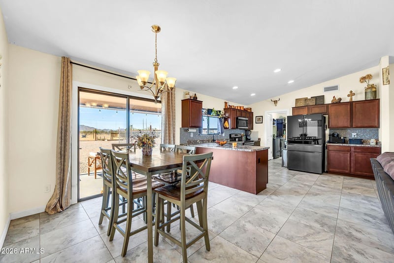 Listing details for 8912 Johnson Ct, Maricopa, AZ 85139 : Enjoy 4.2 acres of cleared, horse-friendly property at the end of a quiet cul-de-sac with no HOA! Built in 2019, this single-story home features 1,500 sq. ft. of living space with tile flooring, a spacious split floor plan, and a bright, open-concept kitchen, dining, and family room.