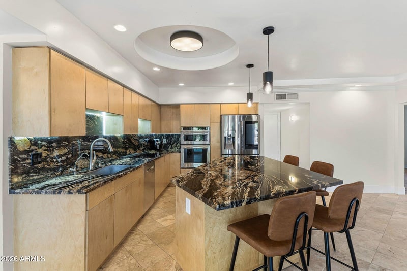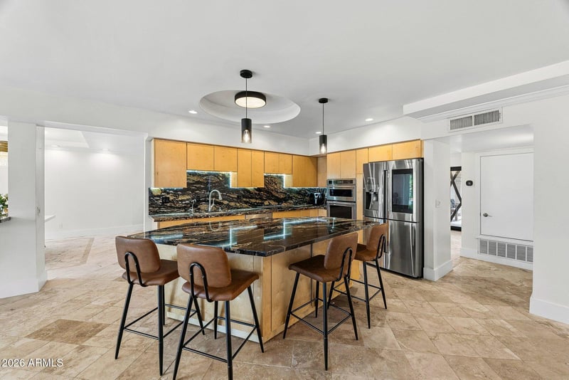 Listing details for 8935 82nd St, Scottsdale, AZ 85258 : Remodeled McCormick Ranch home for sale in Scottsdale offering 3 bedrooms, 2 bathrooms, 1,938 square feet, and a 2-car garage. This move-in ready Scottsdale patio home features an open floor plan with fireplace and a fully updated kitchen with granite countertops, stainless steel appliances, custom cabinetry, and large center island. The primary suite includes a custom walk-in closet and an updated bathroom with dual vanities, a soaking tub, and a separate shower. A secondary bedroom with built-in Murphy bed provides flexible use as a guest room or home office. All closets have been redesigned with custom storage systems. Additional upgrades include dual-pane windows, updated flooring, modern lighting, and a private low-maintenance patio ideal for Arizona indoor-outdoor living. Located in the highly desirable McCormick Ranch community, residents enjoy access to a heated pool and spa, tennis courts, pickleball courts, scenic lakes, and walking and biking paths. The HOA maintains exterior and front landscaping, offering low-maintenance, lock-and-leave Scottsdale living. Convenient Scottsdale location near Old Town Scottsdale, golf courses, dining, shopping, and recreation.