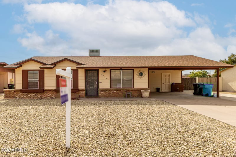 Listing details for 8935 Heatherbrae Dr, Phoenix, AZ 85037 : No HOA!! Nice home in Phoenix in a prime location conveniently close to Westgate entertainment district, State Farm football stadium, restaurants, and shopping. Easy freeway accessibility to the 101, I10 and the 303 loop. The property is nestled in a quiet neighborhood and is ideal for anyone looking for a little sweat equity. Paint and flooring will go a long way. Large backyard with covered patio and storage shed. More storage in carport area. Separate laundry room, remodeled bathroom plus nice sized eat in kitchen.