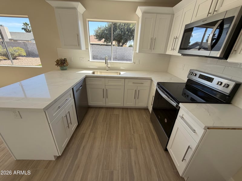 Listing details for 8949 Cinnabar Ave, Peoria, AZ 85345 : Move-In Ready with fresh new remodel! All new kitchen with white shaker cabinets and quartz countertops! New 8 by 48 porcelain plank tile in entire house except new carpet in bedrooms! New stainless steel appliances! New bathrooms with tile shower and tub surrounds! New bathroom vanities! New sprinkler system and curbing with sod in the back yard! This home is close to many of the west valley entertainment and shopping spots with Cardinal's State Farm Stadium just 2 exits down the freeway! Owner/Agent Property.