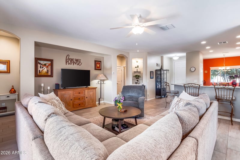 Listing details for 903 Sisso Tree Ave, San Tan Valley, AZ 85140 : This beautiful home blends comfort, style, and everyday functionality with an open-concept floor plan, spacious living areas, and tons of natural light throughout. The kitchen is perfect for gathering, featuring ample cabinetry, generous counter space ideal for entertaining. Enjoy a large private primary suite, well-sized secondary bedrooms, and a backyard designed for relaxing or hosting under those stunning Arizona sunsets. Located in a desirable community close to parks, shopping, dining, and top-rated schools--this is the one you've been waiting for. Come experience why life is better in Ironwood Crossing!