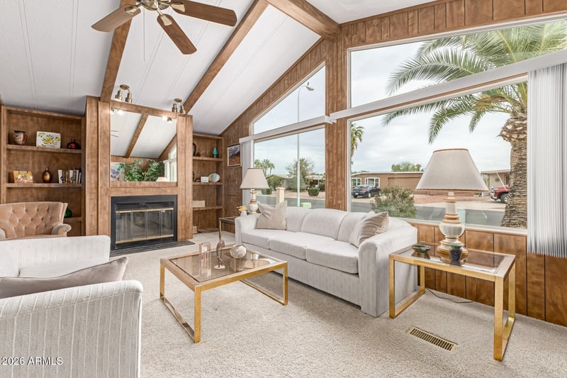 Listing details for 9034 Citrus Ln, Sun Lakes, AZ 85248 : Welcome to your warm weather retreat in Sun Lakes, Arizona, one of the most sought after active adult resort communities in the Southeast Valley. This manufactured move in ready home offers high ceilings, open & airy layout, & a clean warm feel that is bright & welcoming from the moment you enter. The spacious living areas flow easily into the kitchen and dining space, creating an ideal setting for relaxed everyday living or hosting friends. Two well sized bedrooms and two baths provide comfort and privacy, while the home's condition makes it easy to arrive, unpack, & enjoy. Offered fully furnished, this is an ideal winter getaway, seasonal residence, or low maintenance Arizona home designed for comfort, lifestyle, and ease. Outdoor living offers full length covered patio, huge storage... large covered carport and easy walk to Sun Lakes clubhouse, pools, golf courses, tennis and pickleball courts, pitch and put course, lakes, and walking paths, the home offers easy access to everything Sun Lakes is known for. Enjoy multiple clubhouses, restaurants and bars, fitness centers, craft rooms, social clubs, stocked fishing lakes, and miles of scenic paths. Sun Lakes is a gated 55 plus resort style community with several country club neighborhoods, championship and executive golf courses, and a vibrant social calendar.