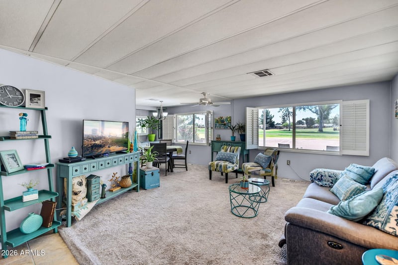 Listing details for 9039 Fairway Blvd, Sun Lakes, AZ 85248 : Beautifully updated golf course home in the highly desirable active adult community of Sun Lakes. This charming 2 bedroom, 2 bath residence offers a spacious and functional layout with designer two-tone paint and updated lighting. The kitchen features refreshed cabinetry, wall ovens, and a dishwasher, opening to comfortable living and dining areas. Enjoy relaxing on the covered patio with stunning views of the golf course. Situated on a generous lot with covered parking, this home offers low-maintenance living. Sun Lakes residents enjoy resort-style amenities including golf, pools, spas, tennis, fitness centers, and a vibrant community lifestyle.