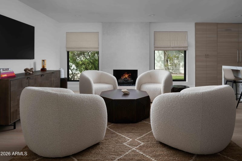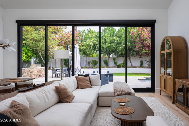 Listing details for 9049 81st St, Scottsdale, AZ 85258 : Fully remodeled designer residence in the heart of McCormick Ranch, showcasing exceptional craftsmanship and premier finishes throughout. Dramatic vaulted ceilings anchor the living room, while the primary suite features soaring 10-foot ceilings, creating an open and airy retreat. A striking 20-foot sliding glass door seamlessly connects the living space to the outdoors, perfect for Arizona living. Custom 9½-inch wide-plank hardwood flooring flows throughout the home, complemented by exquisite quartzite countertops and a statement 10-foot kitchen island. The chef's kitchen is outfitted with premium Monogram and Thermador appliances, custom Salt Italian cabinetry, and thoughtfully curated details. Additional upgrades include Level 5 drywall, Lutron dimmers throughout, designer lighting, marble accents, custom-sized doors, and luxury fixtures by Brizo, Blanco, Kohler, and Emtek. The resort-style backyard is equally impressive, featuring travertine pavers, lush grassy areas, mature landscaping highlighted by striking Japanese orchids, an outdoor shower, and extensive custom lighting. Designed for privacy, ease, and low maintenance, this exceptional home is ideal as a full-time residence or a perfect lock-and-leave retreat. This home features a fully integrated smart audio-video and automation system throughout. Every zone is equipped with Apple TV for seamless app-based streaming and control. High-performance Ubiquiti enterprise Wi-Fi ensures fast, reliable coverage across the entire property. Security and surveillance are powered by an Alarm.com system with real-time alerts and remote monitoring capabilities. Lighting is controlled by a Lutron smart lighting system for elegant, one-touch ambiance and automated schedules. Whole-home audio is distributed through a Sonos system, allowing music to be played in any room or across the house at once. All systems can be easily managed from a smartphone or tablet for effortless, intuitive control of the home's entertainment, lighting, and security.