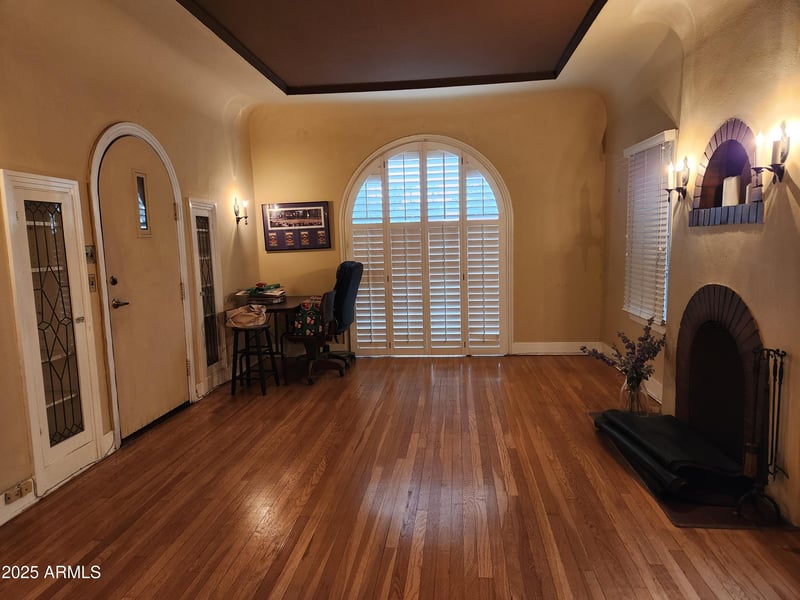 Listing details for 905 Mcdowell Rd, Phoenix, AZ 85007 : A rare opportunity to restore and reimagine a true piece of Phoenix! Listed on the National Register of Historic Places, this 1920s Tudor Revival is ready for its next chapter. Full of timeless architectural details - from its quintessential arched front door and coved ceilings to original oak floors and wood casement windows - this home exudes the character and craftsmanship of a bygone era. The front living room features a welcoming fireplace with brick accents and built-in bookshelves framing the front door, while the formal dining room charms with whimsical corner cabinets. The spacious bedroom and sitting area is full of windows and the bath retains its period appeal with classic mini-hex tile flooring. Don't overlook the incredible potential of the unfinished ATTIC & BASEMENT for.. expansion or creative use. Maybe open up the attic, exposing an original brick wall, to achieve a majestic cathedral ceiling. The oversized backyard with mature landscaping and alley access presents ample space and financial opportunity to add an ADU or casita. With its central Phoenix location being just minutes to downtown, Sky Harbor Intl Airport, and major highways, this property is as convenient as it is captivating. The home was most recently used as a live/work space for an attorney, offering excellent visibility and signage potential for a professional office. Apply for lower property taxes with its historic classification, have peace of mind with a newer A/C (2022), recent service and duct cleaning (Sept. 2025), and a newer water heater. Step into the Story - This Tudor treasure is ready to shine once again!