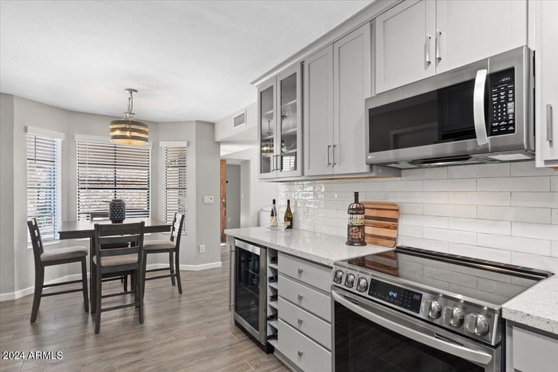 Listing details for 9058 Gelding Dr, Scottsdale, AZ 85260 : Welcome to 9058 E Gelding Drive, a beautifully upgraded single-level townhome in the desirable Scottsdale Vista North community--offering effortless living, scenic McDowell Mountain views, and an exceptional North Scottsdale location. Ideal as a full-time residence or seasonal retreat, this home delivers the true lock-and-leave lifestyle today's buyers are seeking. Vaulted ceilings and abundant natural light create an open, inviting atmosphere, complemented by updated flooring, designer paint tones, and a charming wood-burning fireplace anchoring the living space. The eat-in kitchen is both functional and stylish, featuring granite countertops, stainless steel appliances, recessed lighting, tile backsplash, and generous cabinetry--perfect for everyday living or casual entertaining. The spacious primary suite offers a peaceful retreat with private patio access, dual mirrored closets, and a well-appointed ensuite bath. Outdoors, the low-maintenance backyard and covered patio provide a comfortable space to relax and unwind while enjoying Arizona's beautiful weather. Additional highlights include a new roof installed in 2020, a two-car garage with built-in storage, and attractive grassy front landscaping. The location is truly unbeatable just minutes from Kierland Commons and Scottsdale Quarter, offering premier shopping, dining, and entertainment. Enjoy close proximity to world-class events such as the Barrett-Jackson Scottsdale Auction and the Waste Management Phoenix Open, along with easy access to freeways, outdoor recreation, and all that North Scottsdale has to offer. A rare opportunity for low-maintenance living, mountain views, and community. This is a real gem. New AC in 2022.
