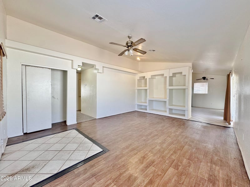 Listing details for 9069 Oneida Dr, Arizona City, AZ 85123 : WHOPPORTUNITIES DON'T HAPPEN VERY OFTEN!!! I can be your Dream Home. Upgraded wood laminate flooring in living room. Very open feeling plan with vaulted ceilings plus a built in entertainment center area in family room. Island kitchen has tile flooring, a dining area, sliding door to covered patio, and tile counter tops. Stainless steel refrigerator also conveys. Master bedroom has a walk in closet, master bath has a DBL vanity plus tile surround on the tub/shower. 2nd bath also has tile surround. Ceiling fans throughout the home. The indoor laundry includes the washer & dryer. Add fully fenced yard, RV gate & parking, and a 2 car garage.