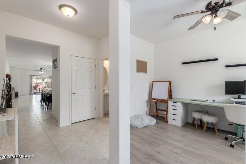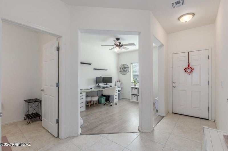 Listing details for 9106 Old Agave Trl, Marana, AZ 85653 : PAID SOLAR! Breathtaking scenes of blooming saguaros encompassing the mountains will captivate you as you venture through the mountain pass into a delightful desert community that awaits you. The Saguaro Bloom community welcomes individuals and families in all chapters of life, presenting wonder and excitement with crystal pools, shaded parks, a splash pad, basketball court, walking paths, and a pristine clubhouse and fitness center. In a community full of impressive amenities, and thoughtful design, this heartfelt Old Agave Trail Home will leave you smitten the moment you arrive. This 4-bedroom home has the space and style you've been looking for. A versatile den with wood-look floors makes the perfect home office, hobby room, or quiet retreat. The bright great room with tile flooring in all the right places is ready for movie nights and gatherings with friends. The kitchen shines with stainless steel appliances, granite countertops, neutral cabinetry, recessed lighting, a walk-in pantry, and a center island with breakfast bar seating ideal for casual mornings with a cup of coffee, or hosting with ease. Unwind in the spacious primary bedroom featuring a private bath and walk-in closet. Step outside to enjoy a serene yard complete with a covered patio, artificial grass area, cozy fire pit, and plenty of room for play, pets, or weekend fun. If you prefer low utility bills all year round this is the home for you, Solar to be paid fully at closing! This one truly feels like home! Don't miss it!