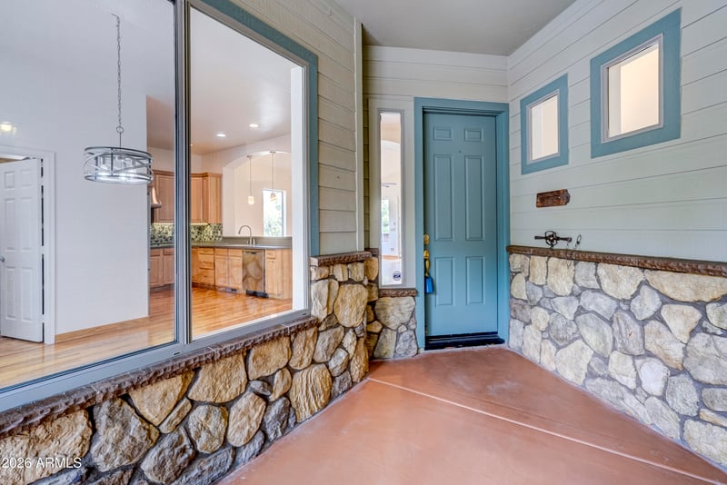 Listing details for 911 Waters Edge Way, Prescott, AZ 86303 : Located on a quiet street in Creekside of Prescott, this custom single-level home offers quality craftsmanship and a comfortable higher elevation climate with cooler summers. Solid hardwood floors extend throughout the main living areas, anchored by a dramatic floor-to-ceiling river rock fireplace. The interior features all new paint, creating a clean, move-in-ready feel. Kitchen and baths include hickory cabinetry and TruStone countertops, plus a flexible den/office. Major updates include a new roof and furnace (just one year old). Enjoy the Trex deck and fully fenced backyard with apple trees, ideal for children and pets. Convenient to trails, shopping, and medical facilities—perfect as a full-time home or seasonal retreat.