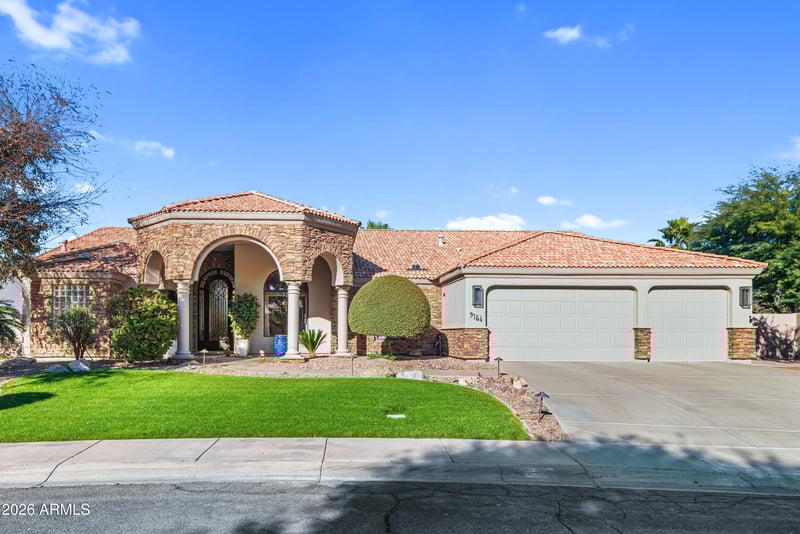 Listing details for 9154 Charter Oak Dr, Scottsdale, AZ 85260 : IF LOCATION IS TOP OF YOUR LIST, located in the exclusive enclave of Scottsdale Mountainview Estates and Cactus Corridor, this 3548 sq ft, 4 Bedroom, 3 bathroom, striking home is refined desert living designed to blend luxury, comfort and style with a variety of features sure to impress the buyer. Set on a generous beautifully landscaped mountain view lot, with 3-car garage, this beautifully appointed home impresses you and, upon entering thru the stately iron front door, you are immediately impressed by the commanding 14ft ceilings looking out onto the waterfall pool and lighted lush backyard. The majestic luxury dining and living area are rooms that first draw you right to these expansive spaces, with tall ceilings and honed flooring through out. The highly sought after split bedroom layout offers a private grand sized vaulted ceiling owner's suite with porcelain tile fireplace, twin closets and a spa inspired primary bathroom. The 3 spacious guest rooms and 2 additional full baths are positioned away from the primary suite. A chef inspired quartz countertop culinary kitchen, with unique, gold hardware cabinets, walk-in pantry, wine refrigerator, and stainless appliances anchor the home complemented by a breakfast nook framed by a sunlit bay window eating area. The adjacent expansive family room serves as the heart of the home, featuring a sleek porcelain tile framed fireplace, lighted wet bar and private backyard views. Dual air conditioning systems and water heaters provide efficient climate control and consistent comfort throughout the home. This is a home where you will live beautifully and entertain effortlessly.