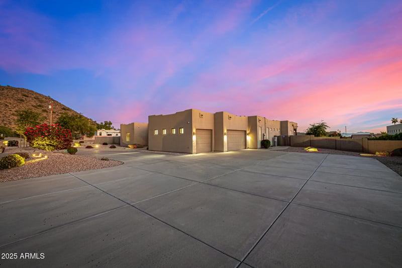 Listing details for 9215 Buckskin Trl, Peoria, AZ 85383 : Exquisite estate on over an acre with city water, resort-style amenities, and multi-generational flexibility. The main residence (3,616 SF) features 4 bedrooms & 4 baths with soaring 12' ceilings, elegant foyer, a gourmet island kitchen with granite counters, maple cabinetry & double ovens. Luxurious primary suite with garden tub & glass block shower. A fully remodeled 1,628 SF guest house offers 3 bedrooms, 2 baths, KitchenAid appliances & Wolf induction cooktop. Massive 2,219 SF workshop/garage with a Trane AC system ideal for hobbies or home business. Outdoor paradise includes heated Pebble Tec pool with waterfall, Viking BBQ, spa, wood-burning fire pit & full-length covered patio. Secure with 8-camera system & electric RV gate. A rare retreat offering true lifestyle versatility. House well-maintained: AC Main house is less than 5 years old AC Guest house replace 2018 AC Workshop/Garage both AC and MasterCool cooler Roof replaced 2022 Entire house painted 2020 Wood beams maintained/painted 2024 HotTub Spa 2021 Pool Heater 2019 Water Softener Main 2025 and Guest House 2019 Water heaters replace 2024 Guest house appliances : Kitchenaid Refrigerator, Microwave, Dishwasher/ovens Wolf Induction Cooktop Stove Main house: Dishwasher 2022 Microwave 2025 Washer and Dryer 2021 All new fixtures for bathrooms, sinks, and faucets, replaced in 2025 Master bedroom wall painted in 2025 Outdoor BBQ Viking grill & Rotisserie Guest house full remodel in 2019 $150K+
